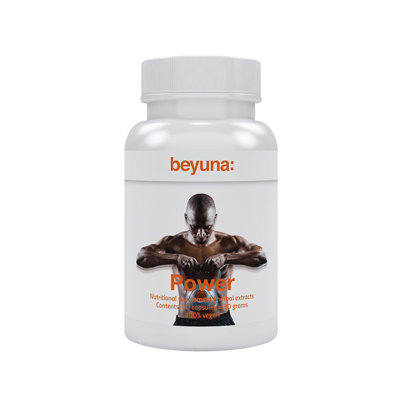 Beyuna Power bestaat uit een combinatie van Taiga wortel extract, Winterkers extract en Indische Wierook extract. Winterkers extract, ook wel Ashwagandha genoemd, heeft een gunstige invloed op het uithoudingsvermogen waardoor je langer door kunt gaan.* Tevens ondersteunt het je energieniveau en het bevordert de alertheid, concentratie en zelfvertrouwen bij sport (prestaties).* Het ingrediƫnt Taiga wortel extract helpt bij herstel na fysieke inspanning.*